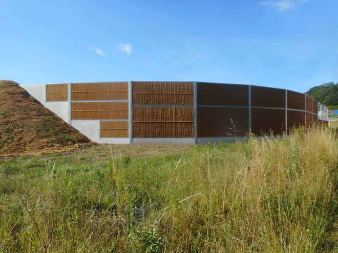 Kokowall® Basic 44,00 lfm x 4,20 m Höhe abzüglich Schräge im Erdwall ca. 10,00 m² = 175,00 m²
