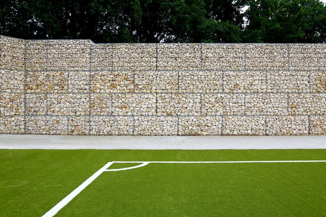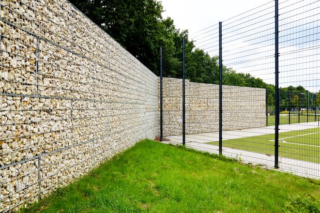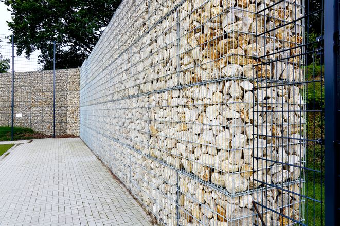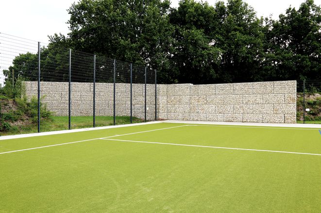 Gabionen 30,00 lfm x 4,00 bis 4,40 m Höhe = 128,40 m²